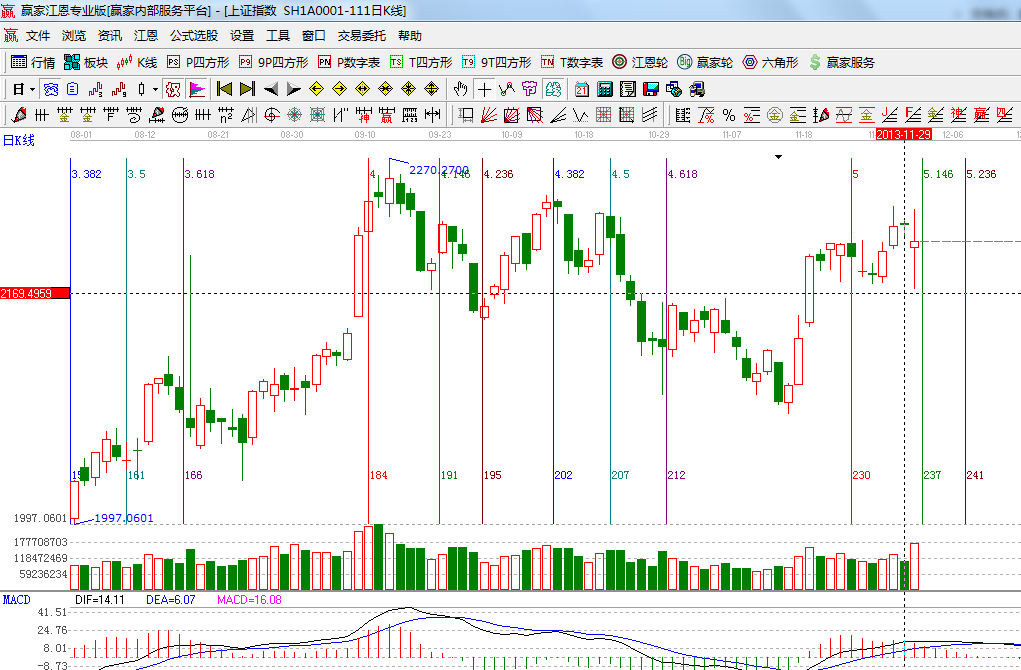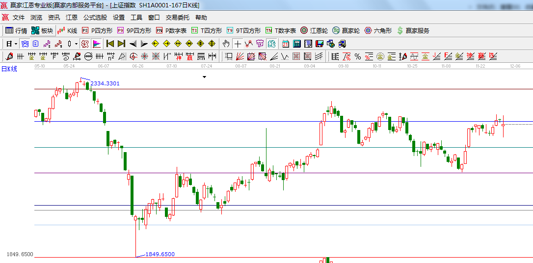 ☆依據贏家江恩系統波段百分比延伸提示:2444與1849點做黃金分割價格圖,0.382位置是2217點,下方支撐為0.5位置2150,上方拋壓在前期頭部2265附近;