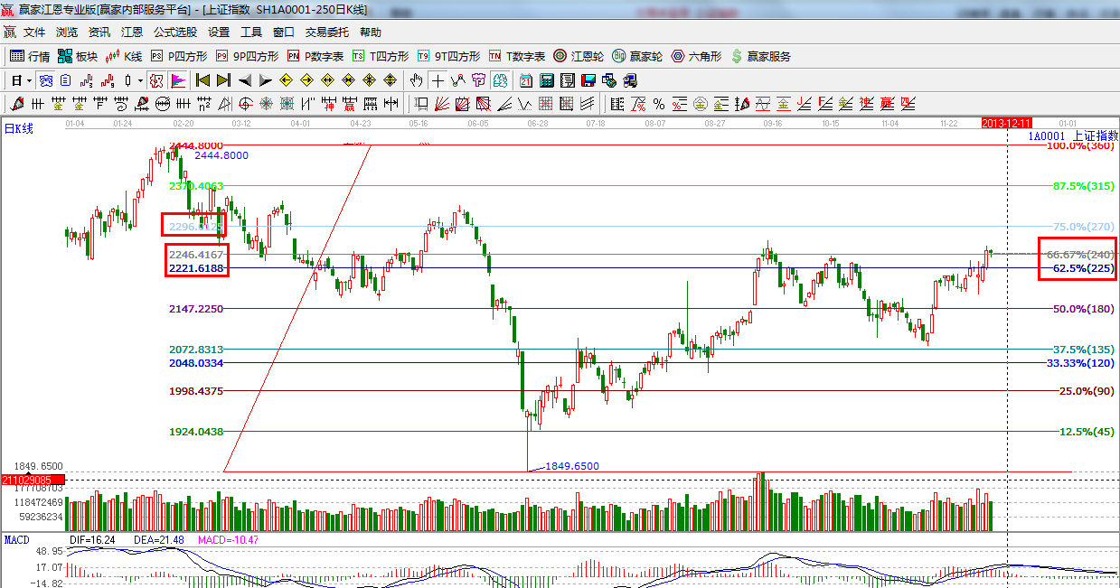 ☆依據(jù)贏家江恩系統(tǒng)波段百分比提示:62.5%與66.67%形成震蕩帶,此區(qū)間以上則短線、波段持股,跌破則減倉;