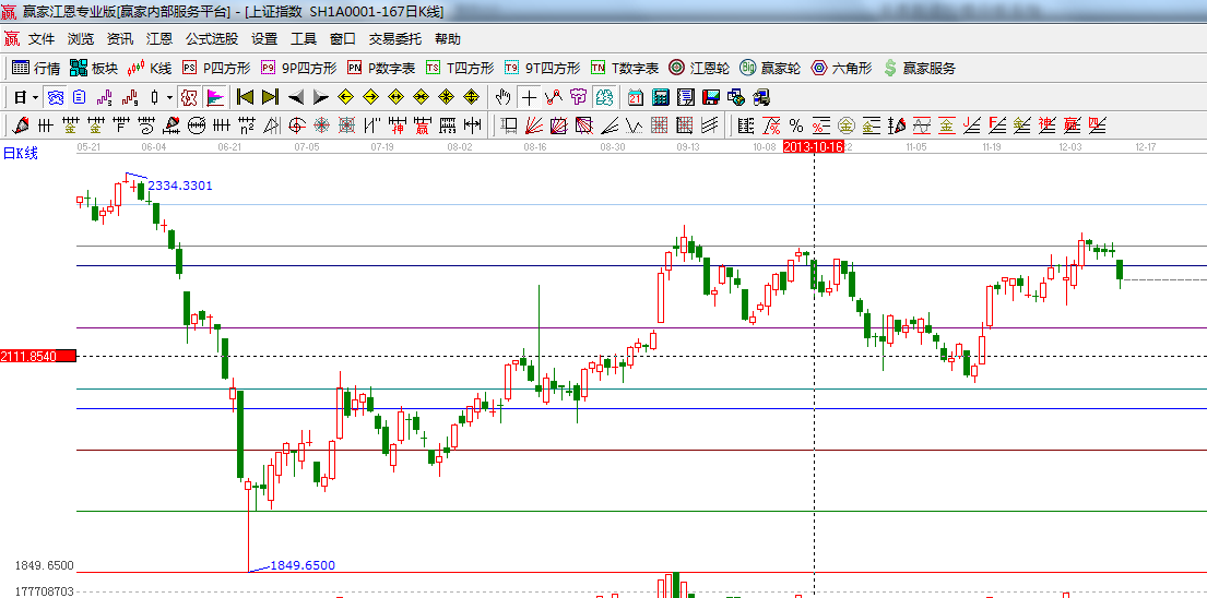 ☆依據(jù)贏家江恩系統(tǒng)波段百分比提示:跌破62.5%與66.67%區(qū)間,50%的位置是2150;