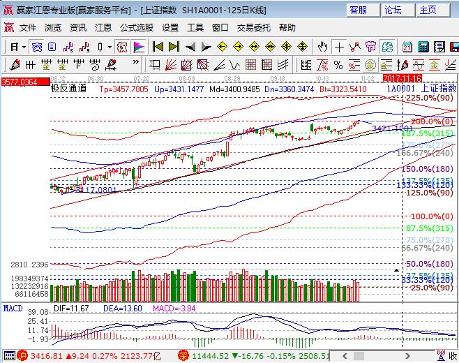 咨詢:13333833889上周五大盤低開(kāi)震蕩延續(xù)小漲,同時(shí)再創(chuàng)新高,深成指幾大指數(shù)處于綠盤小跌,其中創(chuàng)業(yè)板跌幅達(dá)0.76%。板塊方面,釀酒、保險(xiǎn)、銀行板塊大漲,家電、食品和醫(yī)藥消費(fèi)板塊也有表現(xiàn),有色、鋼鐵、煤炭和券商領(lǐng)跌;題材方面,黃金、稀土永磁、高鐵、石墨烯、人工智能和房屋租賃概念領(lǐng)跌,個(gè)股下跌居多,成交量較前日縮量,但整體為逐漸放量。技術(shù)方面,滬指日線沖周短期阻力帶,江恩百分比零度與極反通道外軌線構(gòu)成阻力帶是3420-3444點(diǎn)。短期走勢(shì)上周五盤中以在群中詳細(xì)進(jìn)行描述,15分鐘不破生命線震蕩修復(fù)指標(biāo),帶更大的周期60分鐘受外軌線阻力時(shí)則將于日線共振,操作上此位置不在具備大幅加倉(cāng)條件,前期布局的5成波段倉(cāng)均有不錯(cuò)的收益,短期做好波段股差主,操作頻率以盤中表現(xiàn)強(qiáng)弱決定,3404、3397為日內(nèi)支撐,3420、3429為日內(nèi)壓力。僅供參考,不構(gòu)成任何投資建議。