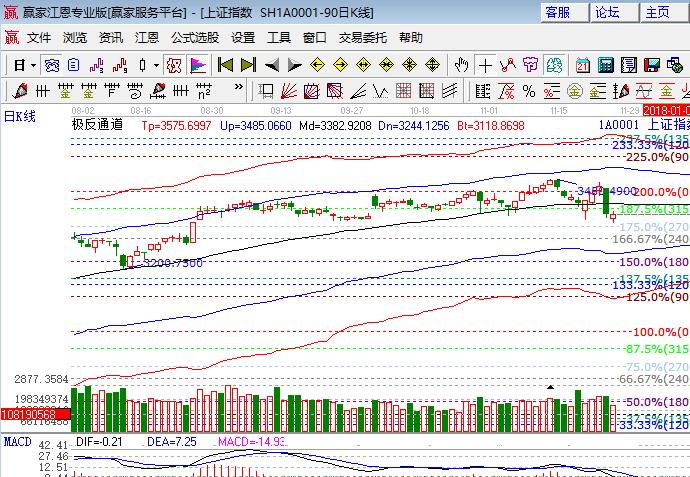上周五滬指慣性低開下探后回抽微漲報收小陽線,深市幾大指數均下跌,創業板走勢最弱尾盤跳水下跌0.68%。板塊方面,有色、權重石油、地產領漲,保險和茅臺等權重小跌;題材方面,稀土、鋰電、石墨烯和5G概念等局部表現,維生素、芯片、人工智能、蘋果、無人駕駛和次新領跌,個股冰火兩重天,整體上漲家數略多,成交量較前日出現明顯縮量。技術方面,滬指日線跌破極反通道生命線進入弱勢,失守生命線宣告調整剛開始,首先要明確這里是中長期走強中的階段性調整,調整的空間與時間在群中及培訓課中進行了工具闡述,在未來的一個月的交易時間周期內短線投機者操作頻率不易過快,本周在防御性板塊銀行帶動下有望會對江恩百分比線315度3370區域回抽,在此期間大多數企業震蕩或震蕩下行的概率依然較大,待銀行產生補跌時,說明本輪的調整進入尾聲,多數公司股價將會開始構造底部,滬指的空間不是很大,通過江恩趨勢工具極反通道規則失守一線看低一線原則,弱勢外軌線有望成為調整的結束區域,以上分析基本是將上周六的軟件工具學習群課的主題思想進行的匯總,具體的盤面跟蹤請投資者結合江恩工具做策略的制定,波段倉保持在4成(中長線倉位),短線休息,3340、3330為日內支撐,3361、3370為日內壓力。僅供參考,不構成任何投資建議。