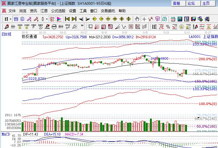 滬指周二低開低走中陰殺跌成陰包陽大跌1.25%,權重股如金融為砸盤主力,深市幾大指數跌幅相對較小。板塊普跌,保險、航運、煤炭、券商、建材等領跌;釀酒、有色、地產相對搞跌;題材方面,極少個別大數據、維生素、鋰電概念表現,次新、高鐵、蘋果、新零售領跌,個股幾近普跌成交量較前日有所減少。技術方面,市場如11號分析所談,反彈到短周期60分鐘極反通道生命線受阻回落,對應到日線上則是270度位置3221點,本次反彈最初定性為分鐘圖產生,遵循日線、周線時間周期循環規則,滬指日線在生命線與弱勢外軌線反復震蕩直到周線時間窗改變趨勢,短期空間方面后半周看15分鐘弱勢外軌線位置,上證50看日線生命線,創業板則將圍繞60分鐘生命線來回震蕩。策略上,技術能力強者,一批中長線標的股可以借助市場震蕩做差價,多數投資者以休息為主,波段倉保持在4成(中長線倉位),短線適量操作,3266、3257為日內支撐,3300、3293為日內壓力。僅供參考,不構成任何投資建議。