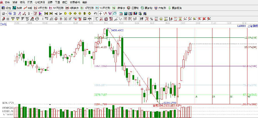 ★依據贏家江恩理論系統江恩波段百分比提示:滬指超預期上漲,突破了百分比90度強阻力3401點。3401點轉變為支撐,下方180度依舊是3352點附近,上方目標阻力在百分比45度3425點附近。
