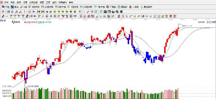江恩看盤綜述:依據贏家江恩技術工具分析得出:周三,滬指再次強勢上攻,突破前期高點再創新高。并觸及極反通道日線藍色外軌線,依據規則,藍色外軌線短期會有一定的拋壓,短期需注意沖高回落以及震蕩的情況出現。藍色線阻力是3475點附近,支撐關注百分比270度3412點附近,下一時間窗口是1.22日附近。操作上,回避近期漲高的藍籌,關注調整過后的低位業績不錯的標的。