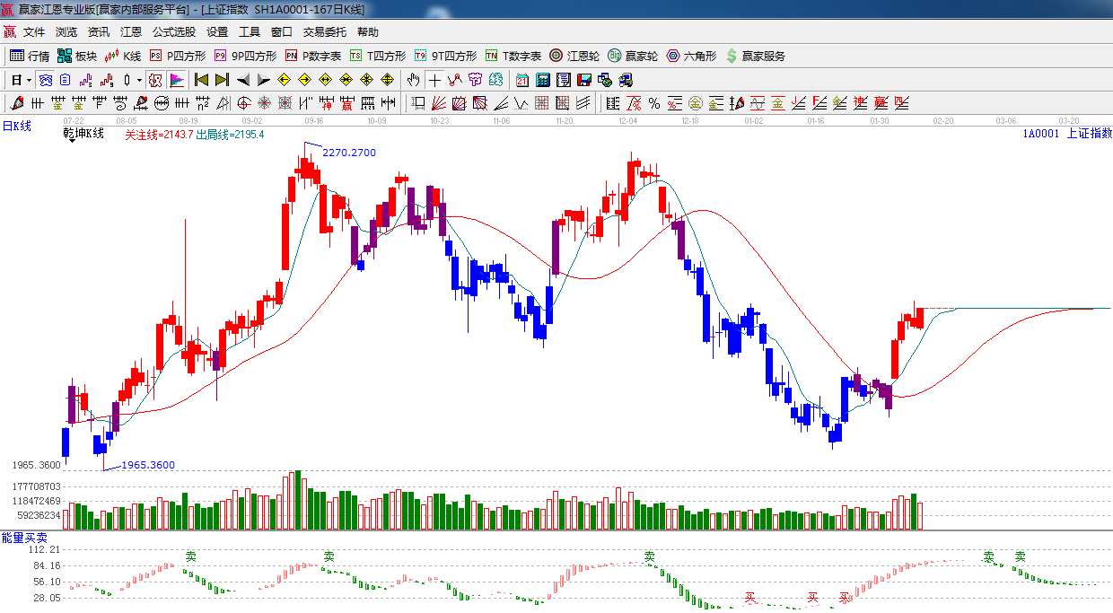 ☆依據贏家江恩系統能量買賣提示:紅色能量柱有縮短跡象,短期謹慎。