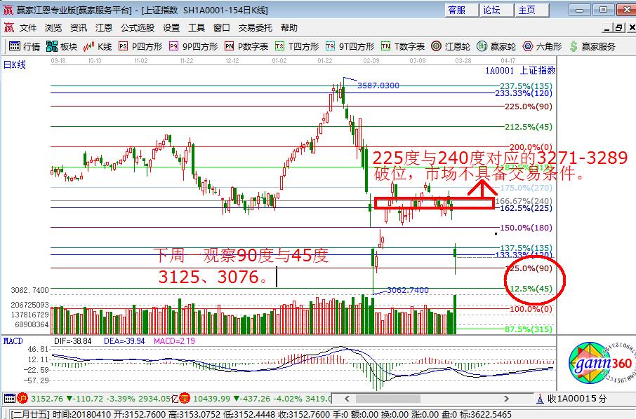 大盤上周五跳空低開低走大跌近3%,深成指幾大指數跌幅4%,此位置方向選擇是外部因素貿易戰引起,恐慌性殺跌加重。板塊方面,僅農業和黃金上漲,鋼鐵、券商、有色領領跌,保險、銀行及石化護盤,次新和科技股成重災區,上千只個股大跌8%以上,成交量急劇放大。技術方面,周末貿易戰成為資訊關鍵詞,談論貿易戰各方言詞及持續時間不確定性,投資者恐慌情緒在蔓延。外盤的持續調整,A股周五大盤回踩趨勢工具極反通道弱勢外軌線隨展開反抽,但對此線還將向下反復確認,盤中觀察外軌線(3100)及百分比90度(3125)支撐區間,滬指月、周、日周期均進入弱勢區域,再急跌會有反彈,只不過反彈也不會一蹴而就,遵從交易信號用活動倉做差價;創業板收盤失守生命線,如進入趨勢線1630-1670區間預計市場將展開整固,初顯交易性機會,如有交易止損一定要跟隨設置。上證50百分比180度(2740)為支撐,225度2807為阻力。操作上穩健者繼續空倉休息,投機者待市場在談到的支撐位震蕩,市場情緒緩和后輕倉交易。今日支撐3100、3125,今日阻力3157、3142,僅供參考,不構成任何投資建議。
