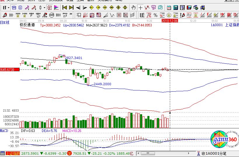 滬指跌0.61%,報收2649點;深成指跌0.32%,報收7928點;創業板漲0.22%,報收1381點。盤面上看,知識產權保護、豬肉、ST板塊、有色、白酒等板塊漲幅居前;創投、獨角獸概念、證券、物流、跨境電商等板塊跌幅居前。滬股通凈流入12億,深股通凈流出6300萬。相應的極反通道指標的支撐壓力提示,如下圖所示:
