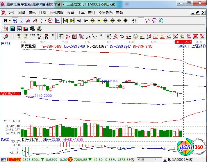 滬指跌0.26%,報收2498點;深成指跌0.58%,報收7289點;創業板跌0.74%,報收1264點。盤面上看,特高壓、創投、造紙、互聯網彩票、傳媒等板塊漲幅居前;高送轉、5G、啤酒、半導體、草甘膦等板塊跌幅居前。相應的極反通道指標的支撐壓力提示,如下圖所示: