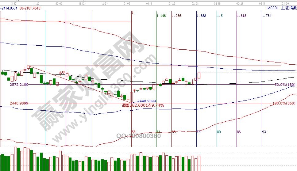 大盤日K線從黑色生命線2570點震蕩向藍色上軌線2690點靠近,自2440點反彈已上攻21個交易日,根據江恩買賣12法則第4條根據三星期上升或下跌買賣,指數越靠近藍色上軌線反壓力越大。空間點位上,轉折趨勢線、江恩波段百分比工具顯示,2月12號支撐是2634點,壓力是2672點,時間上2月11、12號是時間窗口。操作策略,大盤日線生命線上安全區域看多做多,整體倉位保持在4-5成。