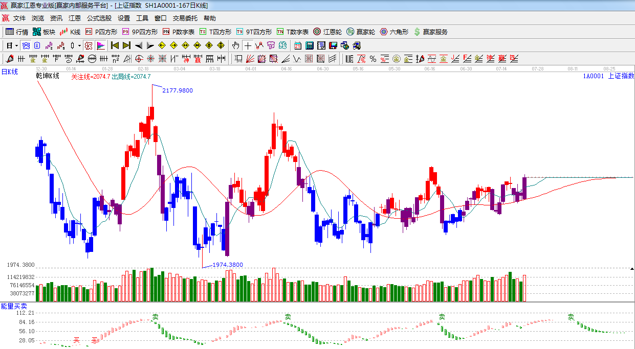 江恩看盤綜述:依據贏家江恩技術工具分析得出:周二指數低開高走,放量突破2060點阻力,指數下一目標位是2082-2089區間,是預計短期指數以高位震蕩為主,日線下一時間窗口是7月28日。操作上,繼續關注低位藍籌股以及受益微刺激的高鐵、核電、特高壓、新能源等概念。