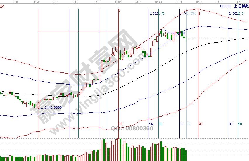 25號是本4月最后一個日線時間窗口,同時也是大盤失守極反通道藍色上軌線反攻確認跌破有效性的時間點,按規則藍線不能收復未來一段時間將確認黑色生命線,明了的目的地期間的運行軌跡就關注大勢分析動態即可。空間方向,波段百分比延伸線、價格四方形提示,24號盤中壓力是3228、3240點、盤中支撐是3175、3152點;時間方面,25號是本月最后一個時間窗口。操作策略,日線跌破藍線上軌線,今天時間窗口觀察指數與藍線關系,穩健者倉位控制在3成,激進者倉位在4-5成。