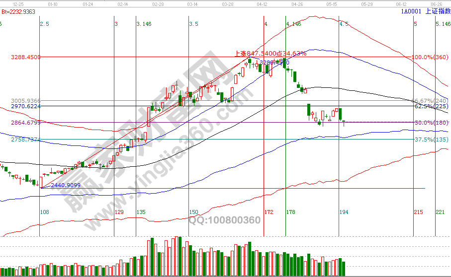 5月除9號至17號時間窗口有一次操作機會外,判斷的本月還會有一次布局機會,從空間波段百分比1倍循環(huán)二分位2834點與極反通道藍色下軌線(詳見工具)是參考區(qū)間,贏家江恩系統(tǒng)時間周期方面,本周短周期重要時間窗口是23號,日線時間窗口是28(29)號。通過系統(tǒng)工具預(yù)判方法得出參考空間與時間后,投資者要做的就是跟隨市場并做出應(yīng)對策略,并且預(yù)判此區(qū)間展開的反彈要強于第一波,具體空間與時間會在系統(tǒng)VIP學(xué)員公布。21號盤中壓力是90度2894點、135度2870點,盤中支撐是315度2844點、270度2829點。操作策略,指數(shù)擊破黑色生命線進入弱勢區(qū)域,高風(fēng)險者倉3成,低風(fēng)險者本周進入備戰(zhàn)等待信號。
