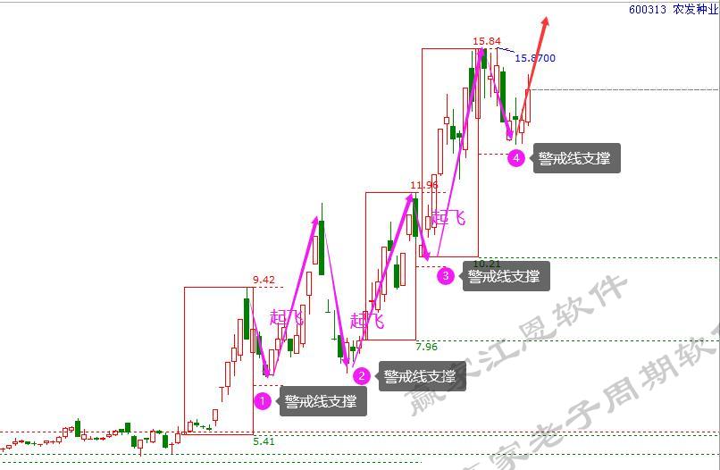 1. 依圖所示,農發種業完成上漲結構后,回落警戒線獲得支撐(按照工具信號規則,得支撐繼續看漲或者創新高),后直接一波攻取9.42元高位。(上漲空間65.7%。)