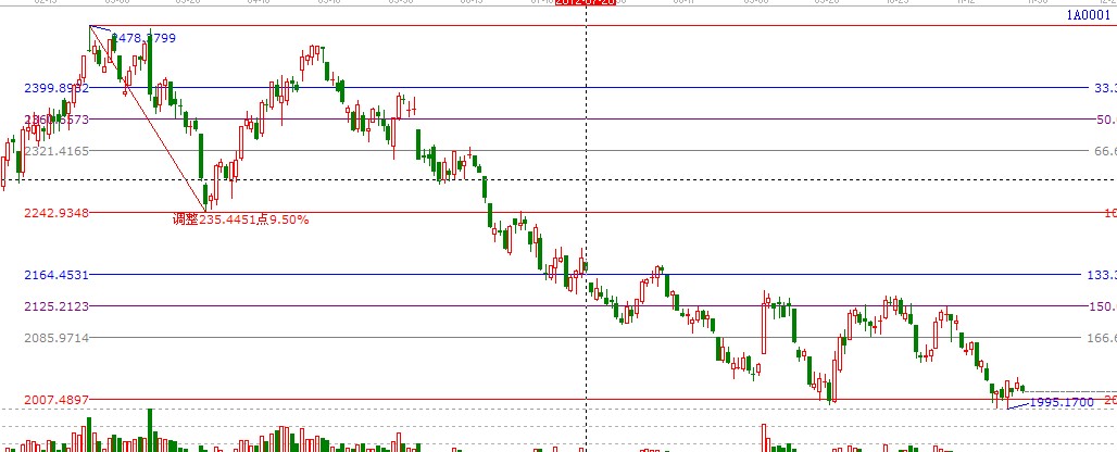 價格工具:江恩波段百分比延伸線,我們以今年高點2478點為起點,2242點為終點做圖如下,2007為第二個循環的終結點;