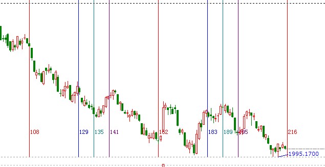 時間工具:黃金時間周期線,我們以2012年1月6號為起點,2012年3月29號為終點做圖如下,11月27號是第四個循環的結束點;