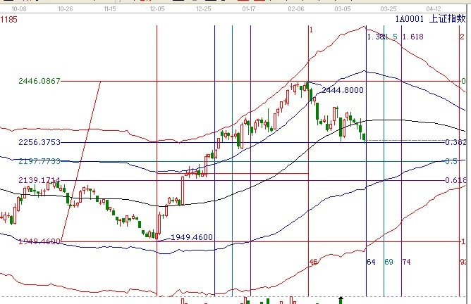 大盤1949.46點(diǎn)上漲到2444.80點(diǎn)運(yùn)行了45個交易日上漲了495.34點(diǎn)然后展開了一波回調(diào),目前上證指數(shù)處于黃金分割0.382位置,時間也是處于黃金分割時間的1.382時間位置,再一次出現(xiàn)了時間跟價格呈四方形的格局。按照江恩理論分析:黃金分割0.382位置2255.58點(diǎn)不破上證指數(shù)在這里再一次展開一波行情。