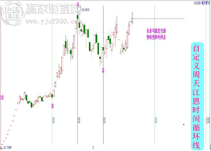 贏家江恩軟件中有系列的時間分析工具,推薦幾個最為常用的:贏家變盤點(輪中輪)、黃金時間周期線、自定義周天江恩江恩時間循環線、等距時間周期線、費氏時間循環線等。
